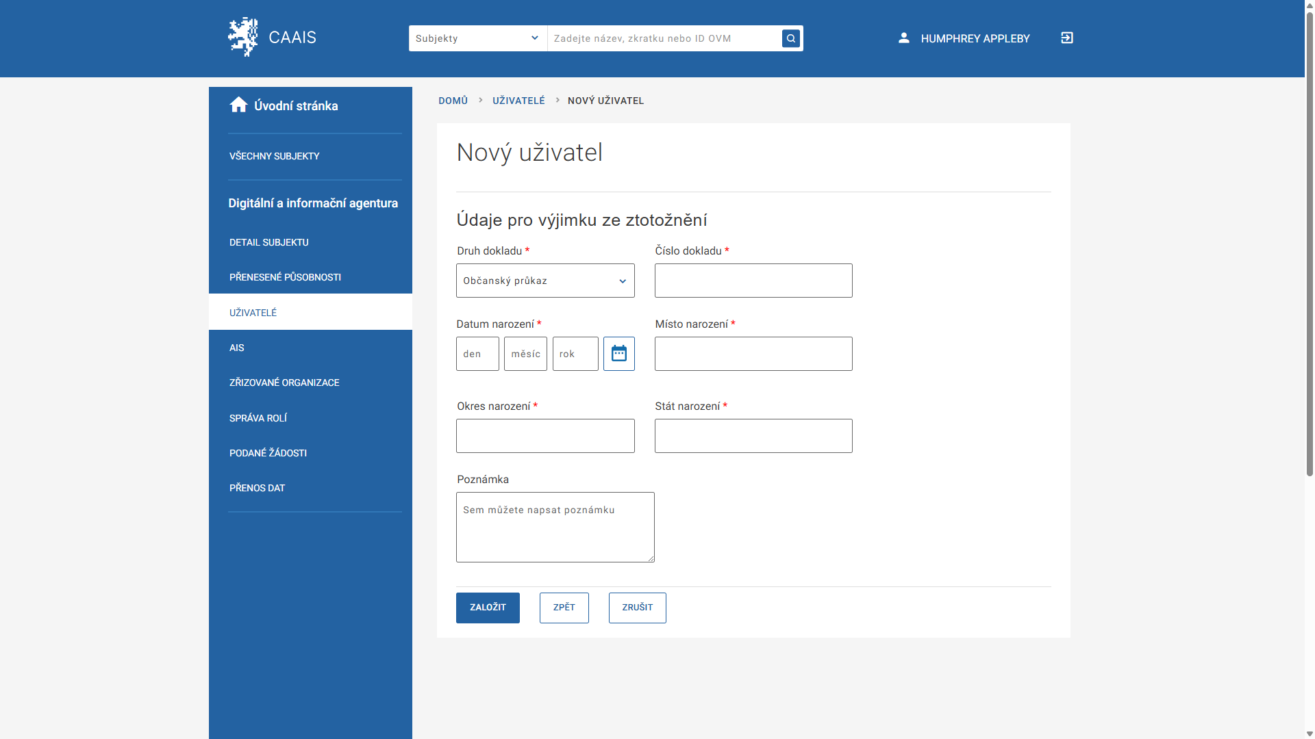 Pokud se dostanete do situace, kdy nebude možné zakládaného uživatele ztotožnit běžným způsobem, můžete požádat národního administrátora o tzv. výjimku ze ztotožnění.