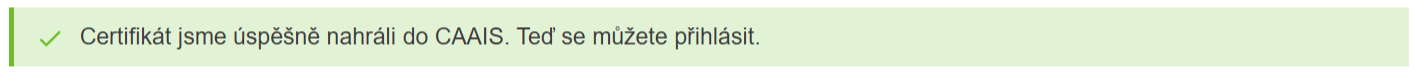 Objeví se zelený proužek: „Certifikát jsme úspěšně nahráli do CAAIS. Teď se můžete přihlásit“.
